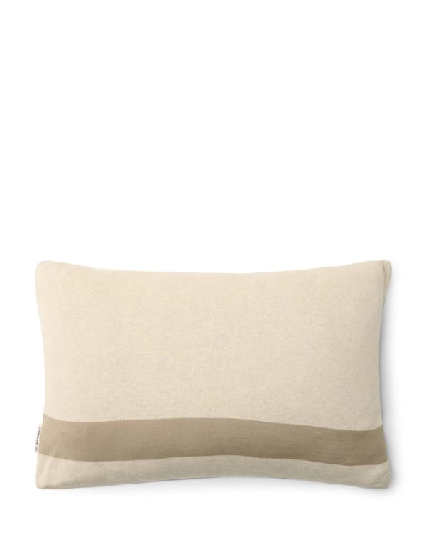 Marc O'Polo Statement Dark sand sierkussen is gemaakt van 100% organic katoen met een vulling van 100% recycled polyester.